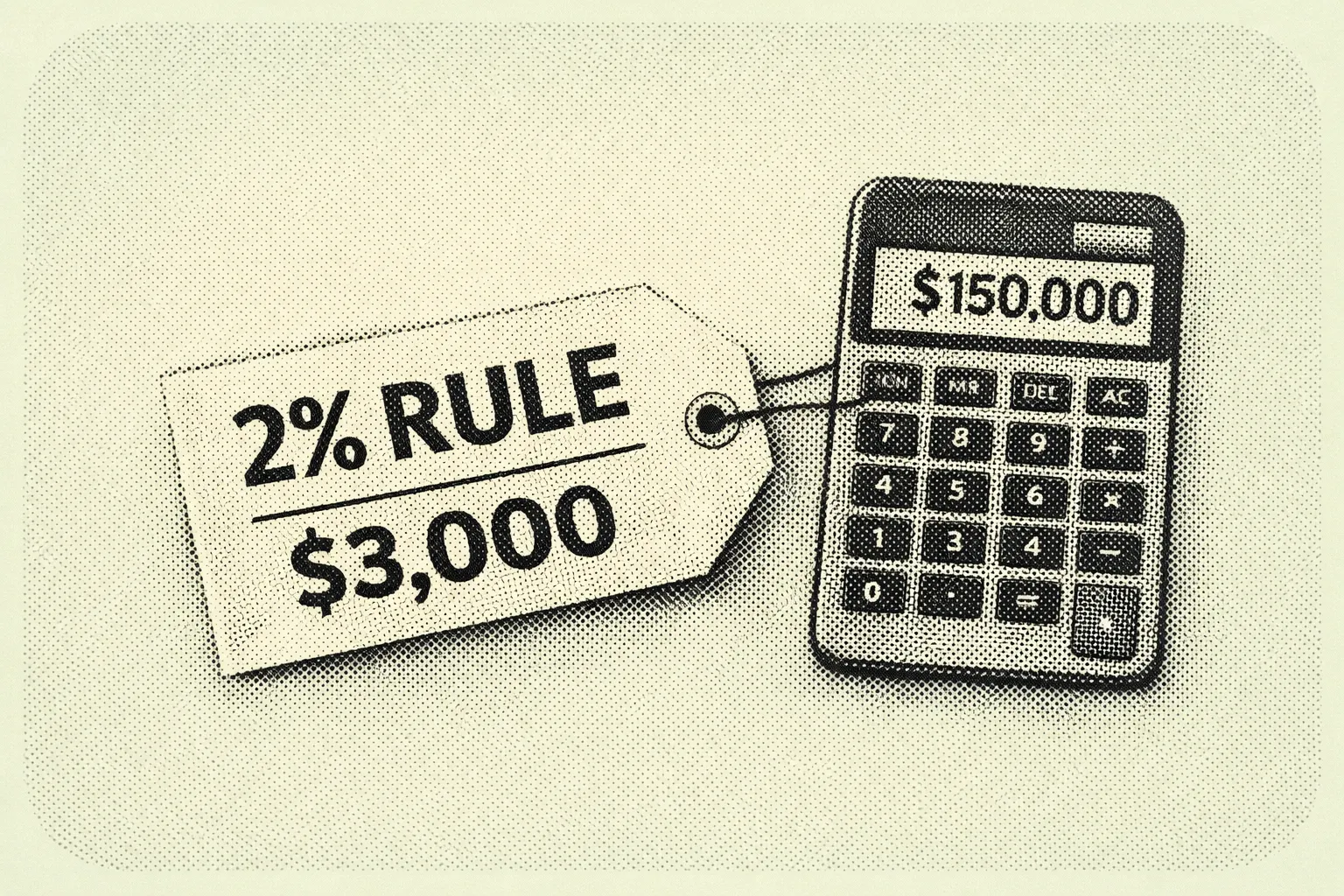 The formula is simple. A property's monthly gross rent should be at least 2% of your total acquisition cost, meaning purchase price plus rehab. If you buy for $150,000 all-in, you would want $3,000 per month in rent.